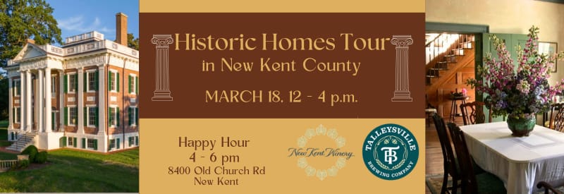 Happy Hour at New Kent Winery following the tours (4pm-6pm) – All are welcome! Separate registration encouraged. Register for Happy Hour HERE.
